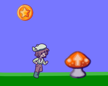 A Mobius strip holds two versions of every object in the game world, with one the vertical mirror image of the other. It only has one edge: the floor and ceiling are the same. Powerups are balloons that you release to the ceiling. When you come to the mirror image of a balloon you released, it will be on the floor, it allows you to jump higher. (This ability for objects to interact with mirror images is what makes the Mobius strip a non-orientable manifold.)